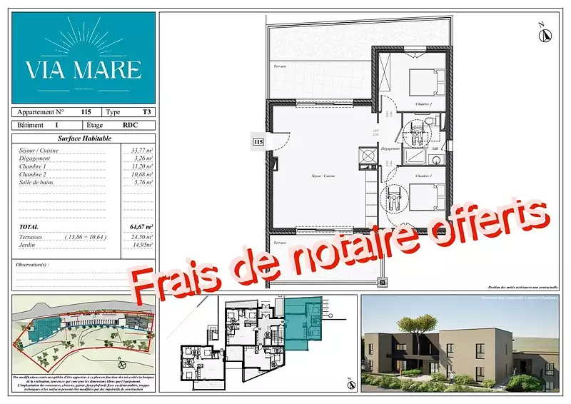FRAIS DE NOTAIRE OFFERTS !!! J'ai le plaisir de vous présenter ce magnifique appartement (N°115) d'une surface d'environ 64.67m2, dans cette résidence nommée "VIA MARE", de belle architecture entre tradition et modernité, qui sera implantée sur une parcelle route de la Mer à Ghisonaccia.