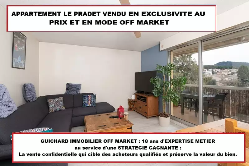 Ce bien proposé par guichard immobilier en exclusivité et en mode OFF MARKET a trouvé preneur au prix et dans un délai très court. Pourquoi ? - D'une part en raison des 18 ans d'expertise métier de l'agence. - D'autre part, en raison des principaux atouts du Off Market qui sont : 1. **Discrétion et gain de temps ** : Le bien est présenté uniquement à un cercle restreint d'acheteurs potentiels déjà qualifiés et en attente. 2. **Préservation de la valeur** : Une publicité trop longue ou trop visible fait baisser la valeur perçue d'un bien. Vous voulez mettre en vente votre bien ou sortir d'une situation de non vente qui s'éternise ? Contactez nous. AGENCE GUICHARD IMMOBILIER ON / OFF MARKET . VENTE - LOCATION - GESTION LOCATIVE . 119 avenue de la première DFL 83220 LE PRADET . Tél : 04 94 00 31 00 . Mail : (5.35 % honoraires TTC à la charge de l'acquéreur.) Copropriété de 28 lots - dont 28 lots habitation. (Pas de procédure en cours). Charges annuelles : 1300 euros.