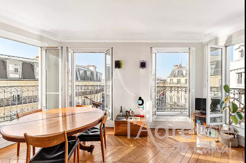 RUE BEAUREPAIRE - BALCON FILANT DE 18m2 Entre la place de la République et le Canal Saint Martin, au croisement des rues Dieu, Yves Toudic et Beaurepaire, au 5e étage d'un bel immeuble d'angle ravalé en 2024, un appartement lumineux et traversant, avec un balcon filant de 18m² ! D'une surface de 65,14 m² Carrez (65,65 m² au sol), il offre une distribution en étoile : une entrée dessert trois chambres, un salon, une cuisine indépendante, une salle de bains et un WC séparé. Exposé Est et Ouest, il profite d'une lumière constante et d'une vue dégagée sur les toits parisiens. Parquet, moulures, hauteur sous plafond, tout le charme de l'ancien est au rendez-vous ! Une cave complète le bien. A deux pas du canal, des commerces, écoles, cafés et transports (métros République, Jacques Bonsergent). A la lisière du Marais et du 11ème arrondissement. Un rêve! Copropriété de 24 lots - dont 16 lots habitation. (Pas de procédure en cours). Charges annuelles : 2800 euros.