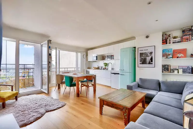 Il se compose d'une entrée, d’un double séjour lumineux avec cuisine américaine aménagée et équipée, ouvrant sur un balcon avec une vue entièrement dégagée, de deux chambres, d’un bureau et de nombreux rangements. Une salle de bains et un WC complètent ce bien.