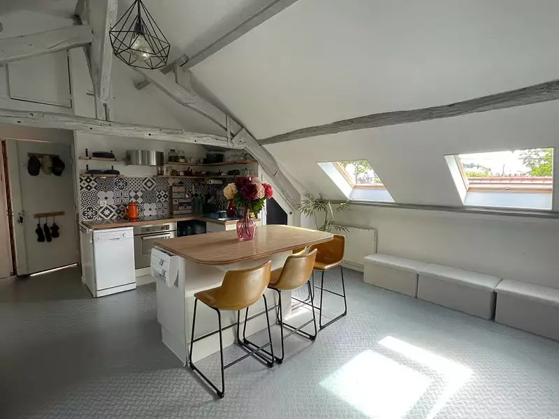 Coup de coeur pour cet appartement de trois pièces de plus de 60m² au sol et 39,67m² en loi CARREZ, comprenant, entrée, salon/cuisine aménagée avec son ilot central, salle de bains avec water-closet, beaucoup de charme, il est à proximité de la gare de Pontoise et des commerces. Dernier étage au sein d'une petite copropriété.