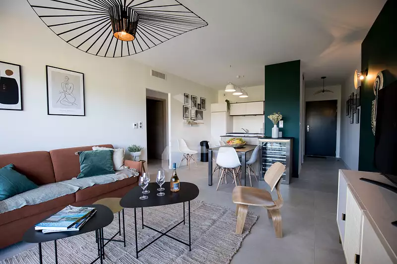 CASA CHA Immobilier®, a partner of the Interkab Porto-Vecchio network, offers a spacious and bright 699 ft2 two-bedroom apartment on the 5th and top floor of a modern and secure residence, close to the marina and shops. It features a comfortable 172 ft2 terrace overlooking a quiet, green setting. This apartment, offering high-quality amenities, is sold furnished and equipped. It also includes an outdoor parking space and a garage. Ideally located, you can access the city center in just a few minutes, as well as the superb beaches of Santa Giulia and Palombaggia.