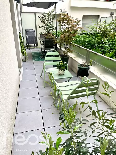 Il comprend un séjour avec cuisine équipée ouverte donnant sur une belle terrasse de 15 m2 avec un jardin intérieur, deux chambres, une salle d'eau, des wc séparés, belle buanderie et nombreux rangements. Chauffage gaz collectif. DPE en C. Local à vélos. Ascenseur. Proche des commerces, des écoles, à 500 m du Bois de Vincennes, 700 m des bords de Marne, 7 mn à pied du RER A (station Joinville-le-Pont). Bien vendu avec une cave et un emplacement de parking en sous-sol. A voir rapidement.