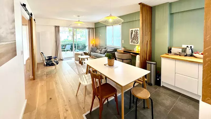 Cet appartement de 65 m² entièrement refait à neuf offre deux belles chambres, un séjour baigné de lumière et une cuisine moderne. Entrée indépendante en rez-de-chaussée, place de parking et cave viennent compléter ce bien rare.