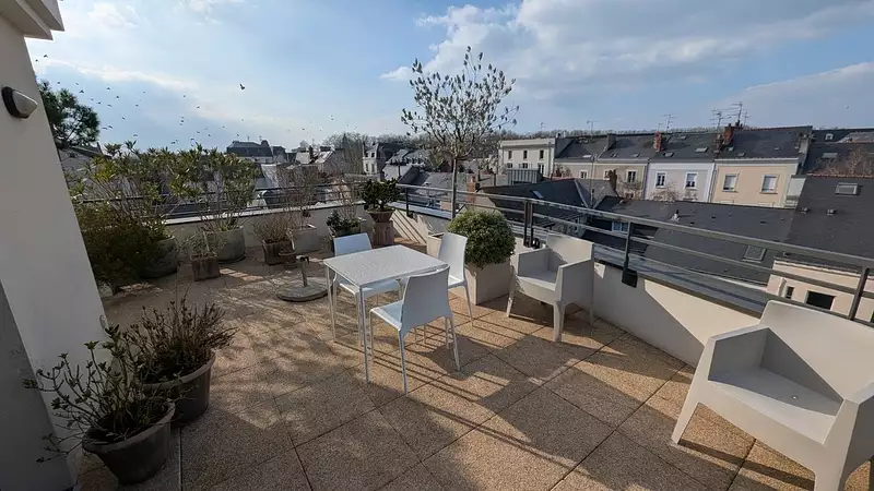 HYPER-CENTRE - A proximité de la place MolièreDans résidence de standing de 2013 avec ascenseur, au dernier étage, appartement de type 3 de 66m² habitables, comprenant une entrée desservant une pièce de vie ouvrant sur une magnifique terrasse de plus de 60m² au calme et offrant une vue sur les toits, exposée plein ouest idéal pour profiter de vos diners au soleil. Une cuisine entièrement aménagée et équipée, un couloir desservant deux chambres dont une avec accès direct à la salle d'eau, un WC indépendant. L'ensemble de l'appartement ouvre sur cette magnifique terrasse.De plus pour votre confort, une place de parking privative et sécurisée dans la résidence ainsi qu'un grand cellier.En ce qui concerne les charges de copropriété, elles comprennent également le chauffage, et l'eau.