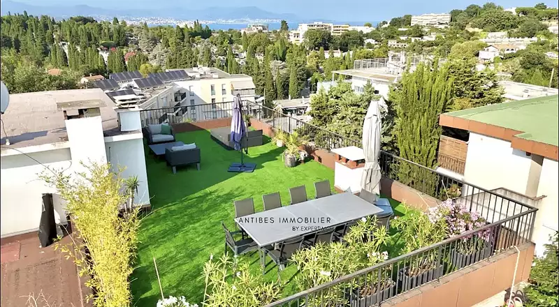 Profitez d'un Toit Terrasse privatif, véritable havre de paix, offrant une vue panoramique sur la Mer et les Montagnes.