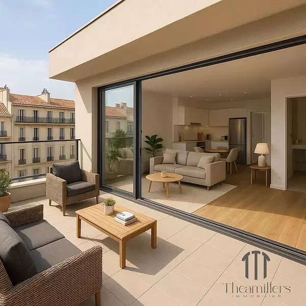 Ce beau T3 de 66M2 se compose d'une séjour très lumineux ouvert sur une terrasse de 15M2, profonde et idéalement exposée SUD.