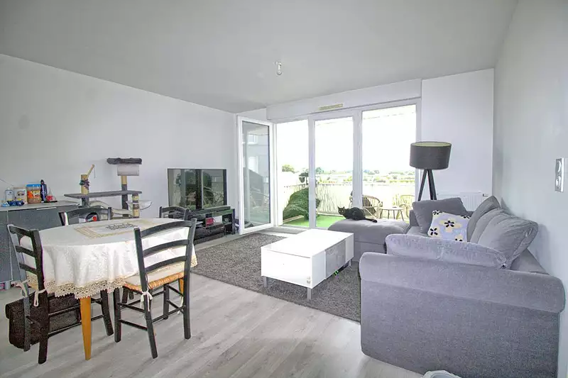 Le séjour donne sur un balcon de 7 m² avec vue dégagée, sans vis à vis.