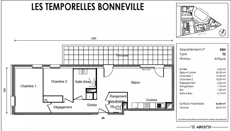 | Disponible immédiatement | 66 m² - 3 pièces - 2 chambres |