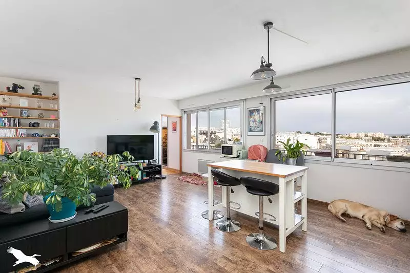 Au dernier étage de cette résidence parfaitement entretenue, cet appartement T4 dispose d'un balcon filant le long de la pièce de vie et des 2 chambres, offrant ainsi une vue dégagée sur la rade et une belle luminosité. Charges de copropriété faibles. A partir du 01/01/2026 , LE DPE revalorisera la note du DPE en E (295) Proposition d'aménagement virtuel non contractuelle en dernière photo. Logement à consommation énergétique excessive : classe F
