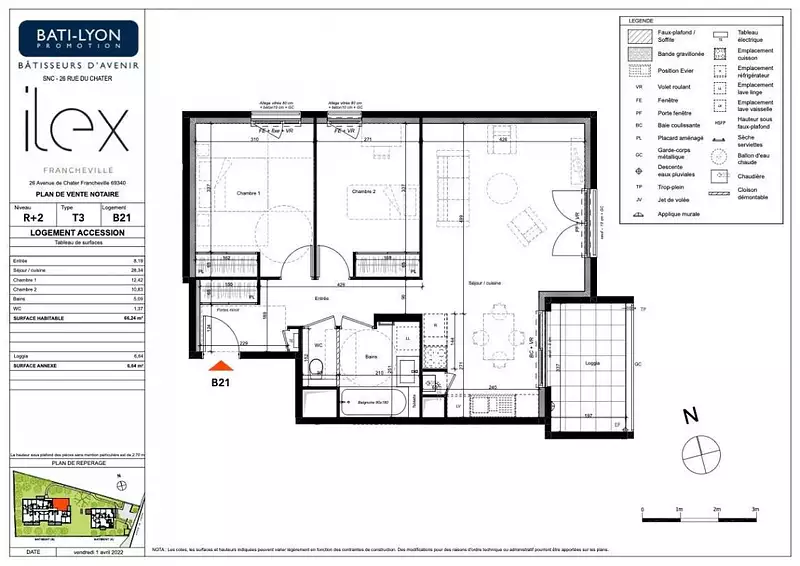 Orpi vous présente cet appartement T3 de 66,24 m² situé au 2ème étage exposé Est avec balcon de 6,64 m² de la résidence « ILEX » construite à Francheville. (Rhône). Cette copropriété est sécurisée (digicode ; vidéophone) et à taille humaine. Belles prestations : les logements sont dotés d'une chaudière individuelle fonctionnant au gaz, les fenêtres sont en double vitrage aluminium et les portes sont blindées 5 points. Garage Double On trouve plusieurs établissements scolaires (maternelle, élémentaire, primaire et collège) à moins de 10 minutes à pied. Côté transports, il y a 5 lignes de bus ainsi que la gare Alaï à quelques pas du bien. Des autoroutes et la nationale N6 sont accessibles à moins de 10 km. On trouve des restaurants, des commerces, 4 boulangeries, un supermarché, un bureau de poste et une boucherie charcuterie à proximité du programme immobilier.
