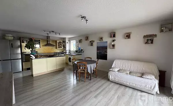 L'espace de vie lumineux comprend une belle pièce à vivre avec une cuisine ouverte, s'ouvrant sur une terrasse exposée plein sud. L'entrée dispose d'un placard, tandis que le coin nuit, bien distinct, propose deux chambres, une salle d'eau et des WC indépendants.