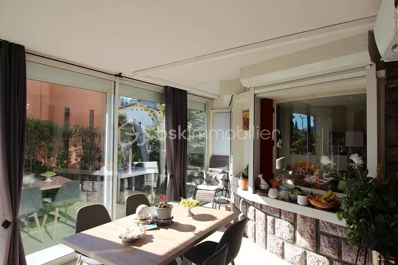 une véranda isolée et climatisée, véritable pièce de vie utilisable toute l'année, ouvrant sur un jardin privatif clos.