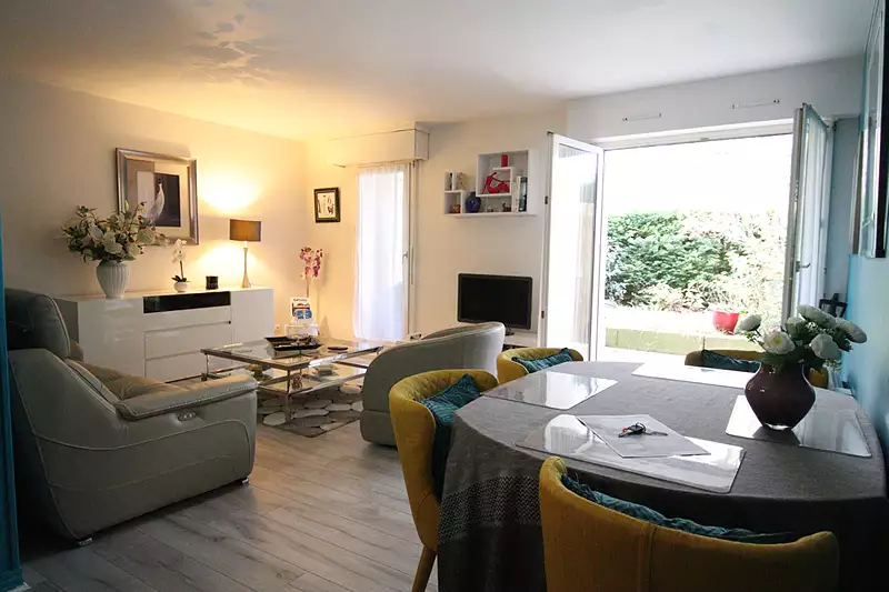 Appartement de type F3, 66 m² habitables, au rez de chaussée, entrée, séjour double (35 m²) avec terrasse et jardin -30 m²), cuisine équipée, 2 chambres , salle d'eau, wc séparés et garage au sous-sol. Huisseries PVC - bon état général - Fibre proche commodités à pied (écoles, collège et commerces) Pas de procédure en cours - charges annuelles 1.600 euros - nombre de lots 80 Honoraires inclus à la charge de l'acquéreur de 12.000 euros TTC (3,75 %) - 320.000 euros net vendeur (3.75 % honoraires TTC à la charge de l'acquéreur.) Copropriété de 80 lots (Pas de procédure en cours). Charges annuelles : 1600 euros.