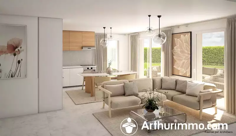 Pièces : 2 chambres lumineuses 🌞, un grand salon/séjour ouvert sur cuisine 🍳.