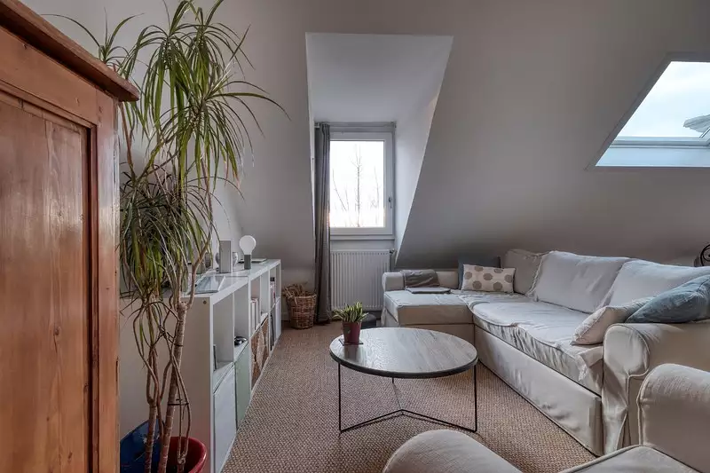 Il est situé au deuxième et dernier étage et possède une grande pièce de vie baignée de lumière, une cuisine ouverte pratique et bien équipée, de nombreux rangements parfaitement intégrés, ainsi qu'une porte blindée pour une sécurité renforcée.