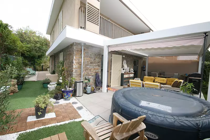 Niché dans un confortable jardin privatif intime et sans vis à vis, vous bénéficierez d'un calme absolu, d'une superbe terrasse protégée des intempéries et du soleil par une pergola bioclimatique. Accès direct à l'appartement sans passer par un hall d'entrée, vous avez l'impression de vivre en villa !