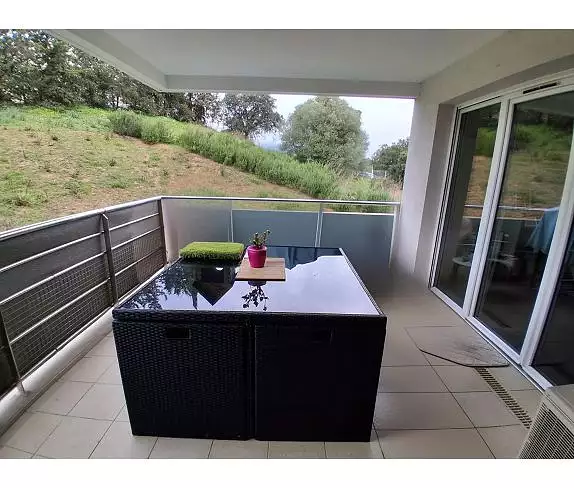 Pièce de vie de 30 m² avec un coté salon donnant sur une terrasse couverte de 12m² , la cuisine est moderne et toute équipée. 2 chambres de 11 et 13 m² avec placards aménagés . Une salle de bains et un WC complètent l'appartement.