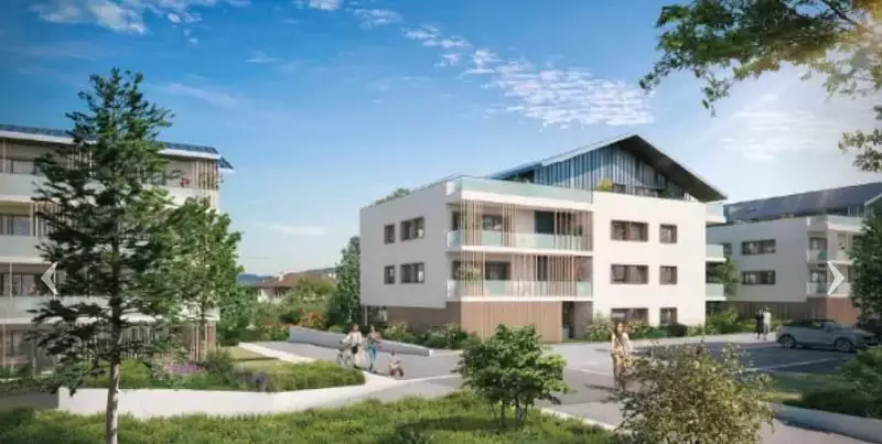 Appartement T3 de 67.20 m² à Bons-en-Chablais avec une entrée de 6.12 m², un séjour / cuisine de 27.25 m² et deux chambres de 12.75 ² et 9.70 m². Une salle de bain de 5.13 m² et WC séparé.
