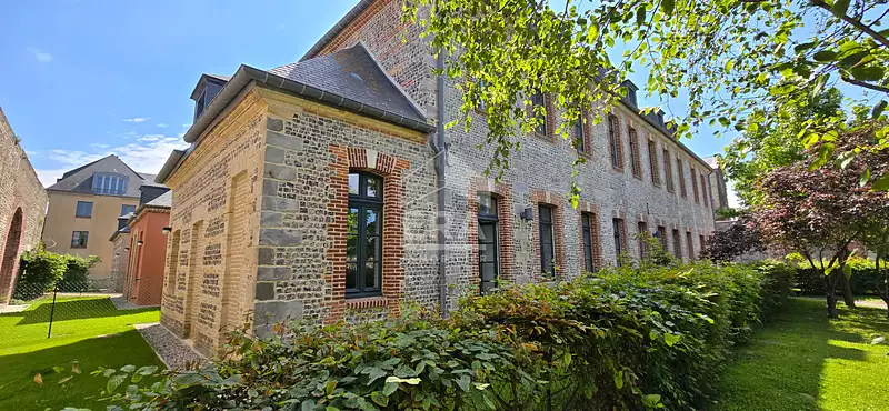 A vendre : Charmant appartement en duplex, situé à proximité du port de Dieppe au sein d'un ancien Couvent transformé en magnifique résidence arborée et sécurisée. Ce duplex, au RdC, offre une ambiance chaleureuse avec son jardin privatif orienté plein ouest et sans vis-à-vis. Refait à neuf, cet appartement offre une belle entrée donnant sur un séjour de plus de 23m², 1 cuisine indépendante, 2 chambres dont 1 au RdC de plus de 12m² et 1 en duplex avec mezzanine , 1 salle de bain et 1 WC séparé. La résidence est sécurisée avec parking dont 1 place privative. Doté d'un chauffage électrique individuel avec la fibre à disposition, il est idéalement situé à proximité des commerces, écoles et transports. A ne pas manquer ! Copropriété de 85 lots - dont 45 lots habitation. (Pas de procédure en cours). Charges annuelles : 1428.48 euros.