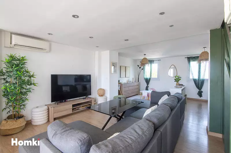 - Le salon donne accès à une terrasse de 10 m² exposée Sud et Ouest, permettant de profiter du soleil pendant une grande partie de la journée.