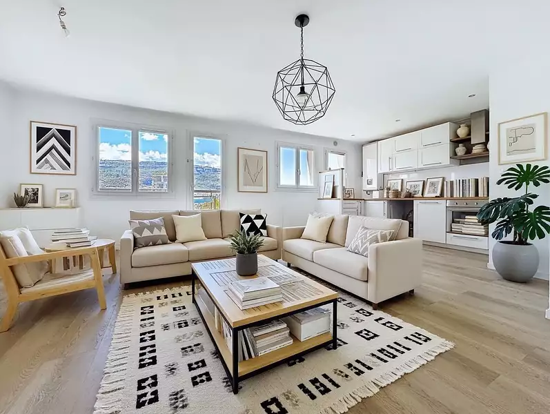 Appartement 3?pièces de 67 m² traversant Est/Ouest, lumineux et sans vis à vis composé d'une pièce de vie de 35?m² avec cuisine équipée ouverte, d'un espace nuit comprenant 2?chambres, une salle d'eau et un WC séparé. Situé au 6e étage, il profite d'une vue dégagée sur les montagnes. Le chauffage est individuel (radiateurs électriques récents). Une place de parking dans la copropriété est possible à la location (19€ par mois)
