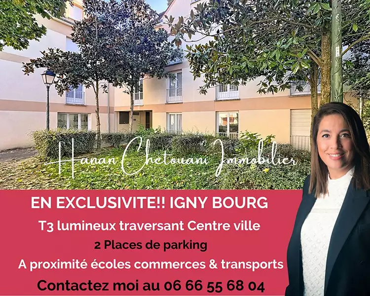 Au coeur d'Igny Village, découvrez ce 3 pièces lumineux et traversant, en bon état, au 1er étage d'une résidence recherchée. Belle pièce de vie, cuisine aménagée, deux chambres avec rangements, salle de bains et WC séparés.