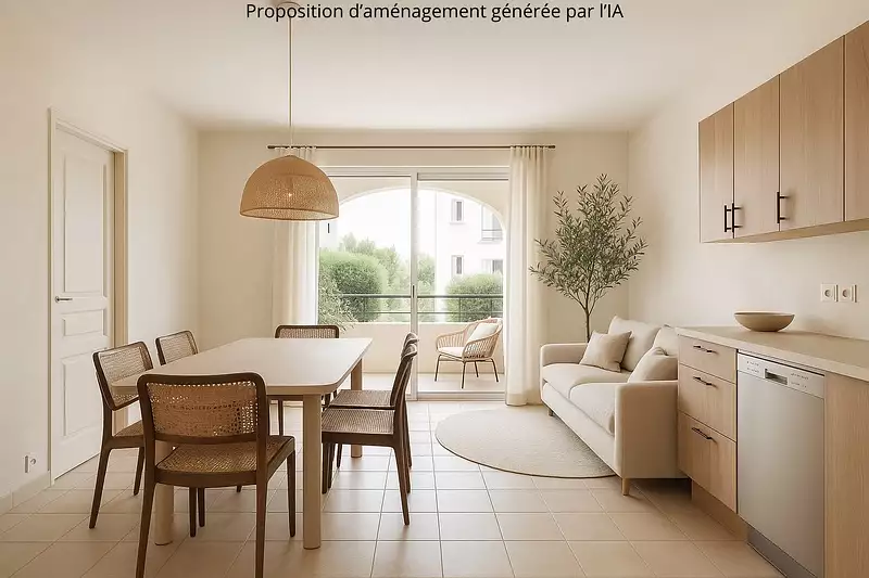 - un grand séjour avec cuisine de plus de 27m² avec une grande baie vitrée ouverte sur une terrasse d'environ 7m²,