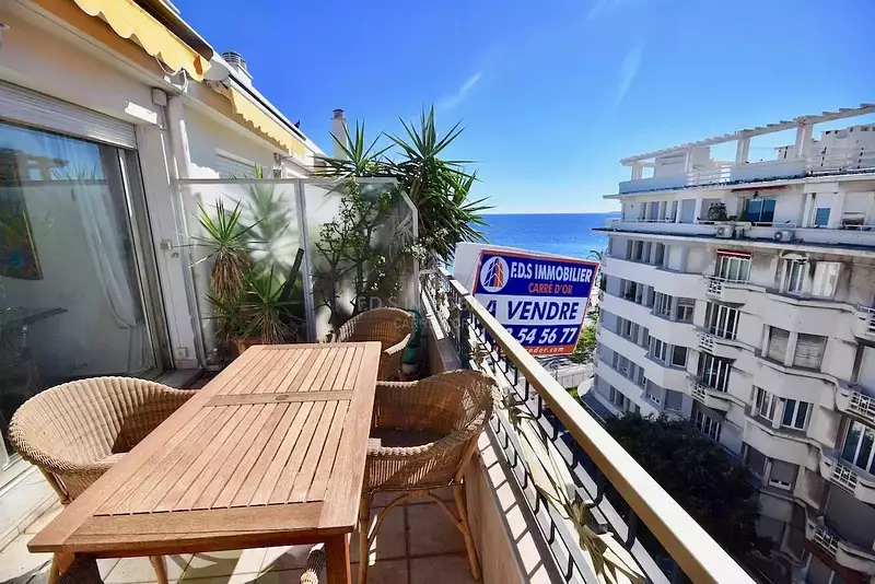 L'accès indépendant à l'appartement est un atout indéniable, tout comme le beau séjour qui s'ouvre sur une terrasse a ciel ouvert, avec une vue mer latérale dominante. La cuisine séparée avec son balconnet ajoute une touche de praticité.