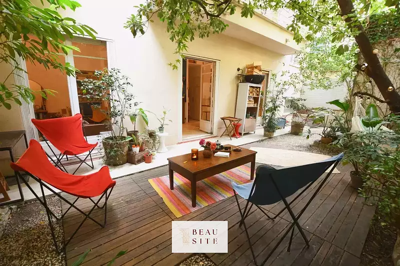 L'espace de vie s'ouvre sur un grand jardin d'environ 50m2 sans vis-à-vis et bénéficiant d'un calme absolu. Une ambiance idéale pour se détendre ou recevoir des amis.