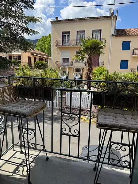Maison de Charme à Quillan : 4 Pièces, cuisine d'été avec loggia