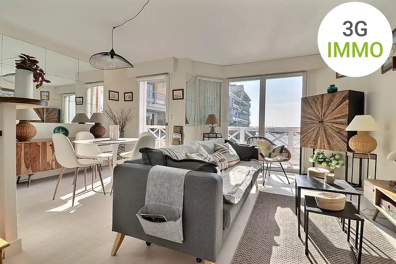 Port Deauville : Vous serez séduits par ce très bel appartement de 3 pièces proposé aménagé et meublé, offrant une vue Unique sur le bassin de plaisance et bénéficiant d'un ensoleillement idéal (SO). Il se compose : d'une Entrée avec placard et vestiaire, d'une pièce à vivre particulièrement lumineuse avec sa Cuisine ouverte entièrement aménagée et équipée, d'un couloir desservant l'espace nuit offrant 2 Chambres avec placard, d'une salle de douche avec lavabo, d'un WC séparé avec lave-mains et d'une Buanderie. Un balcon filant dessert la pièce à vivre et les 2 chambres. Cet appartement particulièrement bien soigné propose de belles prestations et un emplacement idéal (entre les plages de Deauville et Trouville S/Mer), au calme, à 2 pas de la place Morny et à 15mn à pied de la gare. Un box individuel et fermé complète ce bien d'exception et rare à la vente... Au plaisir de vous le faire découvrir !.