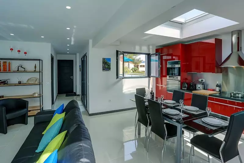Prestations de confort: fenêtres équipées de volets roulants électriques; climatisation réversible dans les chambres et le séjour. - Stationnement: emplacement pour 2 voitures très pratique en littoral.