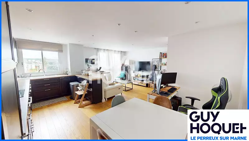 DERNIER ETAGE ! Au calme, cet APPARTEMENT en PARFAIT ETAT avec un PARKING bénéficie d'une situation privilégiée, dans un quartier résidentiel, à proximité du RER, des commerces et des bords de Marne ! Au dernier étage avec ascenseur d'une résidence verdoyante et sécurisée, il offre une surface habitable de 68.85m² et comprend une entrée avec rangements desservant un bel espace de vie de 30m² env. offrant une belle vue dégagée et composé d'un double séjour et d'une cuisine ouverte entièrement équipée, deux chambres confortables, une salle de bains, des toilettes indépendantes, et de nombreux rangements; en complément un emplacement de parking. Résidence verdoyante très bien entretenue à moins de 5 minutes à pied des écoles et tout juste 10 minutes à pied du RER! Copropriété de 95 lots - dont 40 lots habitation. (Pas de procédure en cours). Charges annuelles : 3518 euros.