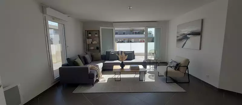 Vous serez immédiatement séduit(e) par sa luminosité et sa spacieuse pièce de vie, sublimée par une cuisine contemporaine entièrement équipée, ouverte pour plus de convivialité.