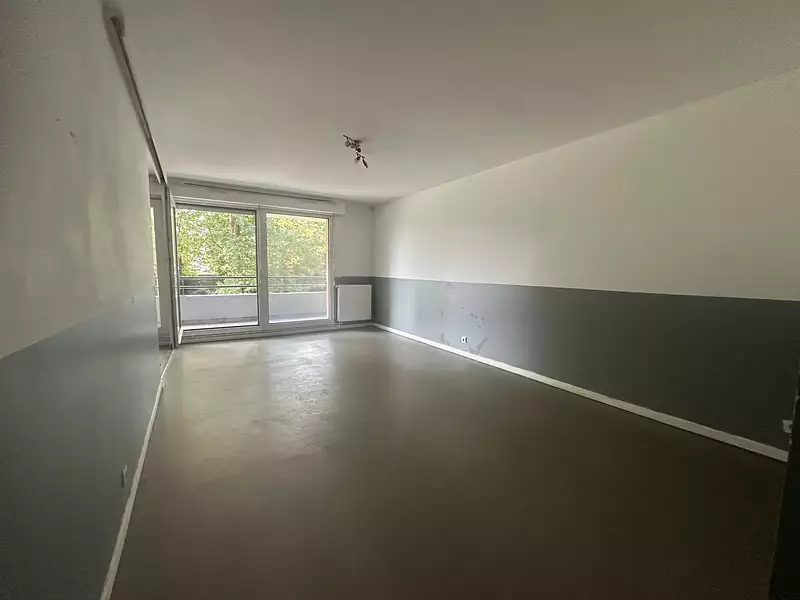 Appartement d'environ 70 m² comprenant 2 chambres, une salle de bain, un WC, un salon et une cuisine ainsi qu'un grand balcon