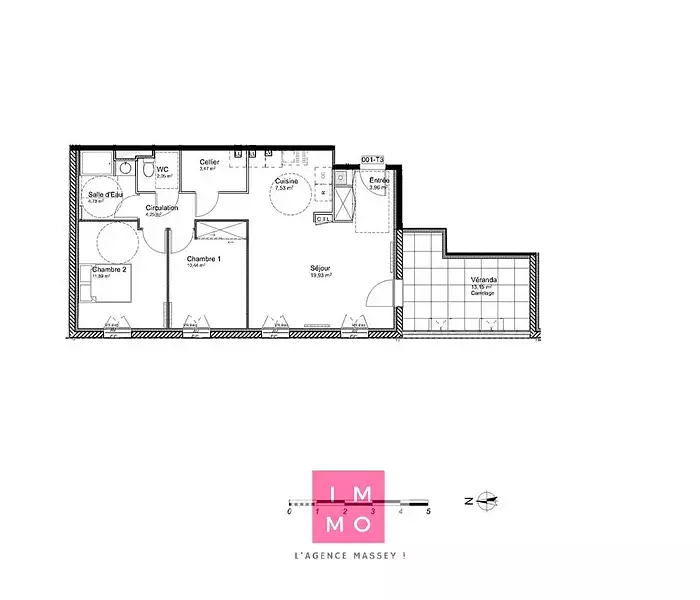 C’est en rez-de-jardin que vous trouverez un appartement de 68 m² avec sa véranda de 13m², accompagné d'une place de parking et d'un cellier/atelier.