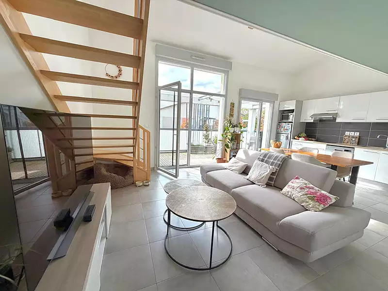 A Toulouse dans le quartier de Saint-Simon notre agence vous propose à la vente cet appartement. Au premier étage d'une copropriété de standing , ce bien se compose d'une entrée donnant sur un grand séjour lumineux avec cuisine. Une chambre ainsi qu'un cellier et des WC indépendants. A l'étage, un dégagement donnant sur une chambre, un dressing, une salle de bain et des WC terminent la description du logement. Un balcon ainsi que deux places de parking aériennes complètent le bien. A proximité de toutes les commodités.