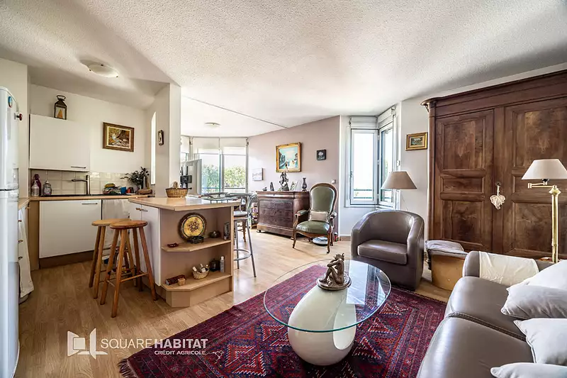 Toulouse / Croix Daurade Au coeur du quartier de Croix Daurade, à deux pas de son église, découvrez ce bel appartement T3 situé au dernier étage d'une copropriété très bien entretenue des années 90. Lumineux grâce à son exposition sud-ouest et sans vis-à-vis, il se compose d'une entrée avec placard aménagé, ouvrant sur une grande pièce de vie avec cuisine équipée. Côté nuit, vous trouverez deux chambres avec rangements, une salle de bains ainsi qu'un WC séparé. Le plus : une place de parking est vendue avec l'appartement.