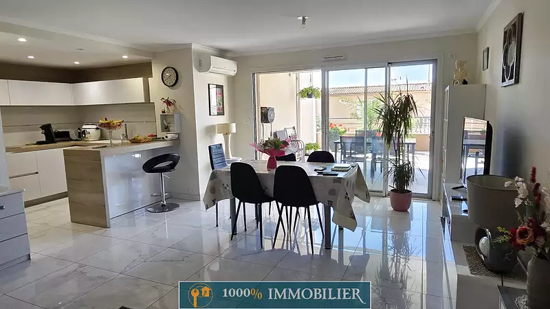 1000% IMMOBILIER vous propose en EXCLUSIVITÉ et avec une BAISSE de PRIX (ancien prix: 369500€) : dans une résidence sécurisée et de standing, à 8/9 minutes à pieds du centre ville, des commerces et de la plage, un appartement climatisé au 1er étage de 68m2 hab. environ + 53m2 environ de loggia/terrasse + place de parking privée et sécurisée. Composition: une entrée avec placards, donnant sur la terrasse: un séjour/cuisine équipée de 34m2, un dégagement avec placards, un wc séparé, une salle d'eau et deux belles chambres donnant également sur la terrasse/loggia. Environnement de qualité et au calme. Belles prestations. Résidence construite en 2019, sous garantie décennale. DPE en A et GES en A. Pour une visite contactez Philippe 06 63 34 41 43 TOUTES NOS ESTIMATIONS SONT GRATUITES.