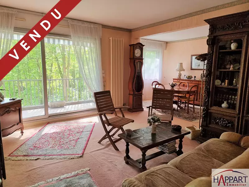 Appartement 3 pièces, avec loggia vue sur le parc, comprenant : une entrée, un séjour avec accès à la loggia, une salle à manger (2ème chambre possible), une cuisine aménagée et équipée avec accès aussi à la loggia, une chambre, une salle d'eau, un WC. Rangements. Cave et Garage.