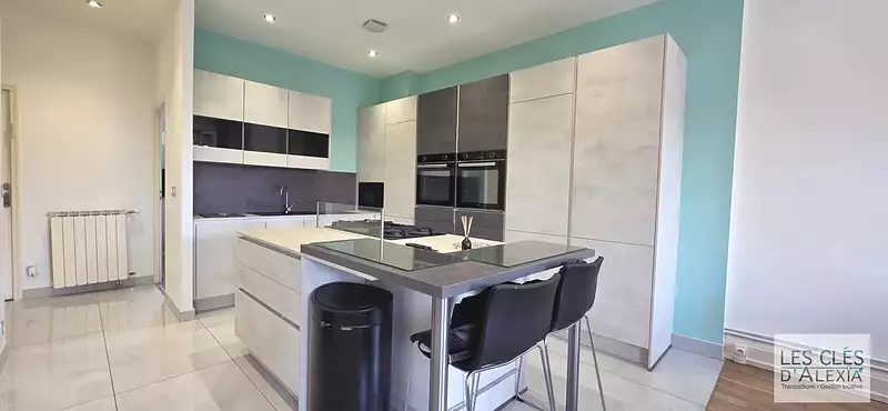 L’ensemble s’organise autour d’un îlot central convivial, idéal pour cuisiner et partager.