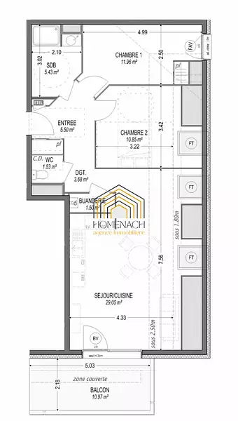 | 69,5 m² - 3 pièces | Étage 1/2 avec ascenseur |