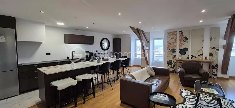 Il se compose d'une grande pièce de vie très chaleureuse de 38 m2 avec un espace salon séjour sur parquet massif, d'une cuisine ouverte aménagée et équipée, de 2 chambres avec dressing et placards, d'une salle d'eau avec douche à l'italienne et d'un wc.