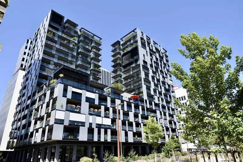 Lumineux et convivial, le séjour de 32 m² avec sa cuisine entièrement équipée s'ouvre directement sur la terrasse, offrant une vue imprenable sur le Parlement.