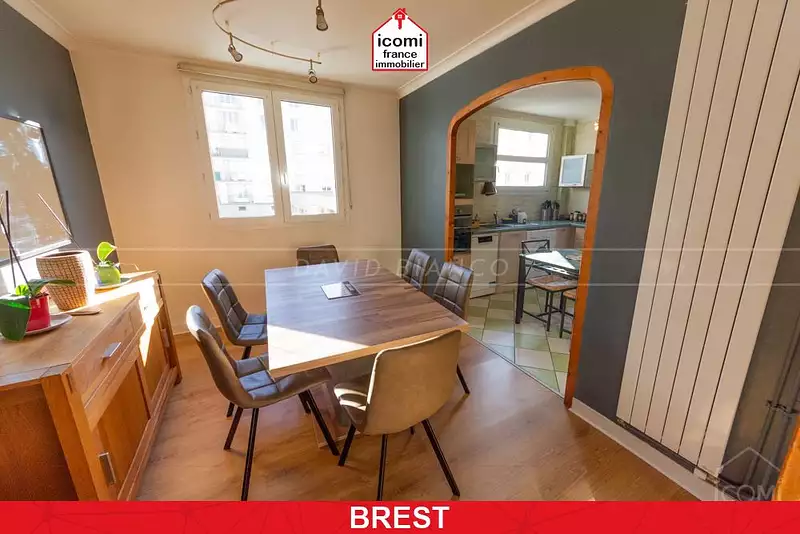 ***** VISITE VIRTUELLE SUR DEMANDE ***** BREST - CAPUCINS ***** En couple, célibataire ou investisseur, à la recherche d'un appartement T3 de 70m² dans une copropriété sans travaux. Il dispose d'une cuisine équipée semi-ouverte, d'une entrée avec rangement, d'un salon-salle à manger lumineux avec une lumière traversante, les chambres sont confortables, la salle de bain pratique et le WC séparé. Situé au rez-de-chaussée surélevé d'un immeuble de 4 étages, il inclut également une cave. Un garage est possible en option. Une visite s'impose! SURFACES - utile 86m² - carrez 70m² - pondérée 71m².. DPE : E (289) - GES : E (63) - Coût annuel d'énergie entre 1375€ et 1861€ (chauffage entre 1147€ et 1552€ - eau chaude entre 130€ et 177€ - éclairage entre 33€ et 44€ - auxiliaire entre 65€ et 88€). Bien dépendant de la copropriété. Pas de procédure en cours. Montant moyen annuel de la quote-part (budget prévisionnel) de 741€ (62€ par mois). Nombre de lots d'habitation de 208 sur un total de 266. Les honoraires sont à la charge de l'acheteur d'un montant de 8500 € soit 128000 € net vendeur (6.64%). La présente annonce immobilière est rédigée sous la responsabilité éditoriale de David Bianco. Les informations sur les risques auxquels ce bien est exposé sont disponibles sur le site Géorisques http://www.georisques.gouv.fr. Réf.: 188709-312848 - ICOMI FRANCE IMMOBILIER - BIANCO DAVID - 06 95 83 13 91 - - Agent Commercial EI - RSAC BREST 801 747 668 00011 - ***** LIVRE D OR DISPONIBLE SUR LE WEB *****