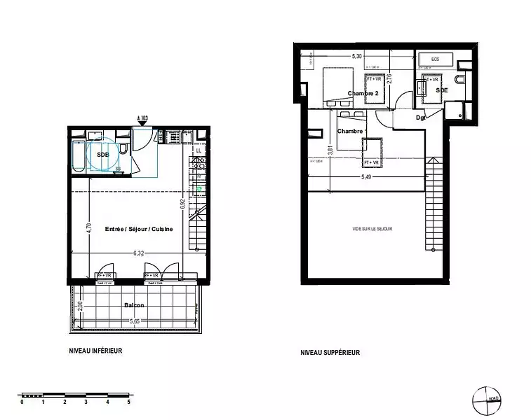 •T3 duplex de 69.56 m² environ avec terrasse de 11.29 m² environ : Un espace cosy et lumineux avec une grande terrasse idéale pour profiter du climat méditerranéen.