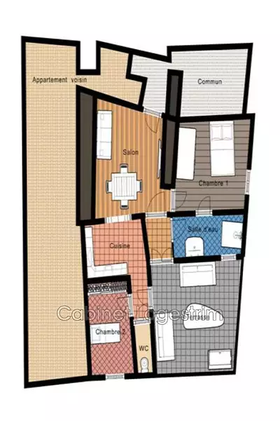 | 70 m² - 2 pièces - 1 chambre | Dernier étage (1er) |