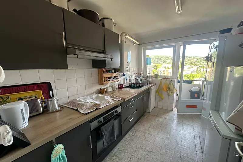 En vente, appartement T3, situé à Draguignan, au 7ème étage d'un immeuble datant de 1970, bénéficiant d'un ascenseur. L'appartement bénéficie d'un double vitrage.