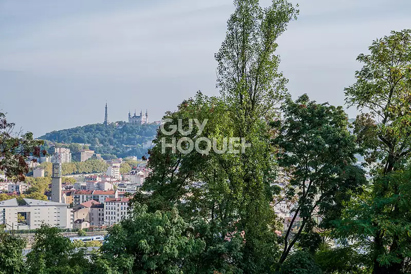 Votre Agence Guy Hoquet Lyon 4 forte de ses 26 ans d'expérience sur son marché immobilier lyonnais, est fière de vous présenter en exclusivité ce bel appartement lumineux et ensoleillé, avec une terrasse de 11M2 et sa pergola, il est équipé d'une climatisation pour un meilleur confort l'été. son exposition Sud, et a la fois traversant dans la verdure au calme, cette résidence récente de 2018 est en parfait état. Cet Appartement offre une vue dégagée sur Fourvière et une triple exposition Sud - Ouest - Nord. Vous découvrirez un grand espace salon - salle à manger - cuisine (équipée meublée) d'environ 36m2. donnant sur la terrasse. 2 chambres avec placards, une à l'entrée de l'appartement et l'autre vers le salon, une salle de douche avec meuble vasque et une fenêtre , un WC séparé. Pour compléter ce bien. En sus du prix, vous pouvez bénéficier de 2 garages fermés : 1 PMR et 1 standard Charges : 1680 euros Taxe foncière : 1400 euros Anne Monard Bretin 06 09 50 26 08 Copropriété de 110 lots - dont 50 lots habitation. (Pas de procédure en cours). Charges annuelles : 1680 euros.